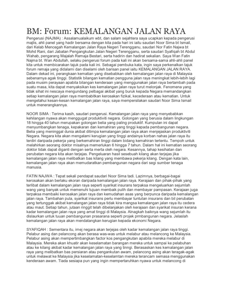 Forum punca kemalangan jalan raya. Gejala Sosial Remaja - Buli Gangsterisme Rempit Buang Bayi 7. 35000000- Ikuti dan Daftarkan diri Anda untuk memenangkan dan ikut menguji kemampuan SEO Anda. Check more flip ebooks related to Koleksi Idea Esei PA Sem 2 of norliza kasa.